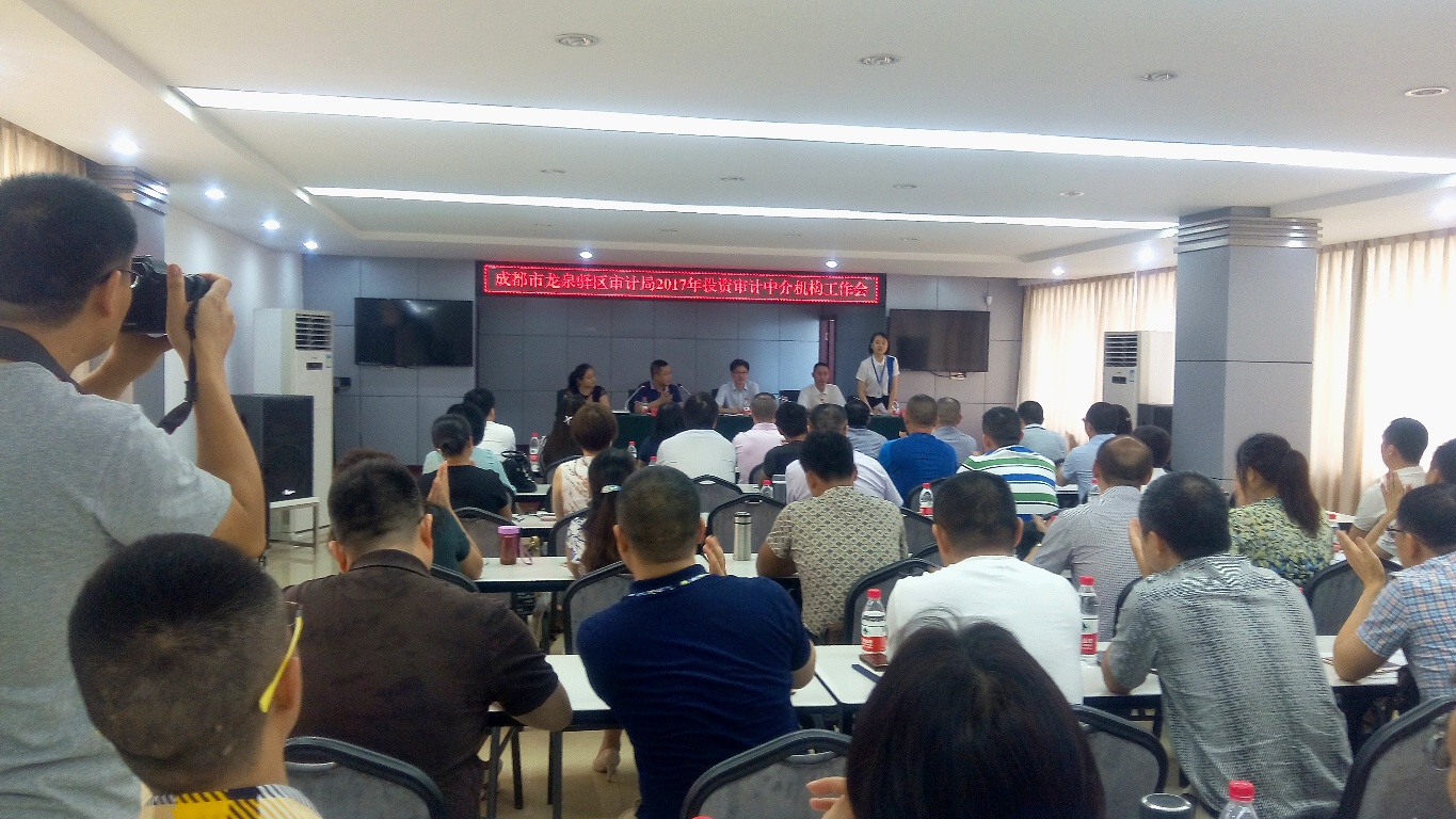 為進一步規范政府投資審計行為,提高審計質量和效率,切實加強委托審計項目和社會中介機構管理,2017年7月18日,成都市龍泉驛區審計局召開社會中介機構固定資產投資審計工作會議。我公司冉老師出席此次會議,在會上踴躍發言,表示將進一步加強三級復核制度,提高審核報告質量,真實客觀地反映問題,規避審計風險,并提出應進一步規范審計項目送審資料,小項目以打包的方式進行的建議。